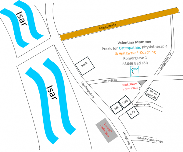 Meine Praxis liegt im Herzen von Bad Tölz, nahe der Isar und der Marktstraße.